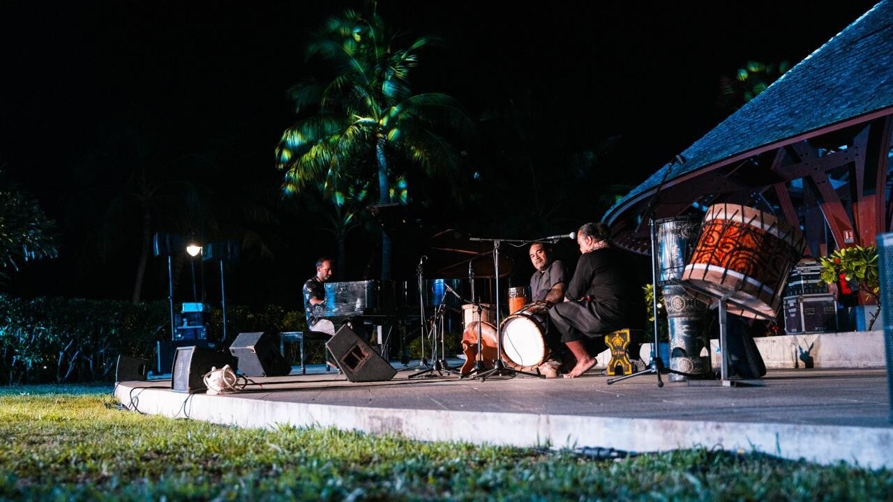 Fenua Jazz is a musical creation project that brings together jazz piano and traditional Polynesian percussion.